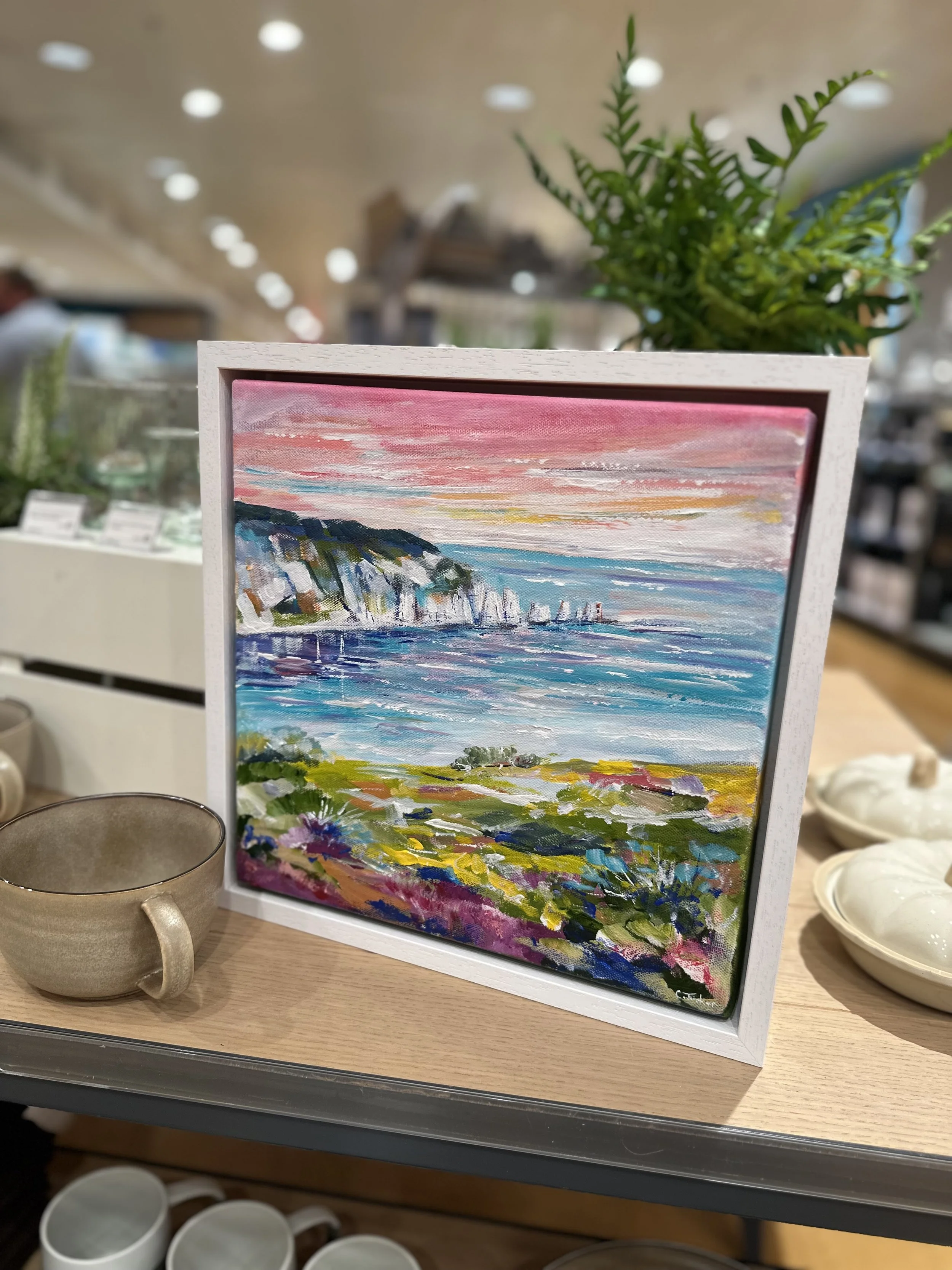 The paintings are produced from Caroline’s home studio in Dorset. Hettie her companion is often by her side. They walk the coastline and countryside together collecting images and inspiration. Visit the shop to purchase cards, originals and prints……