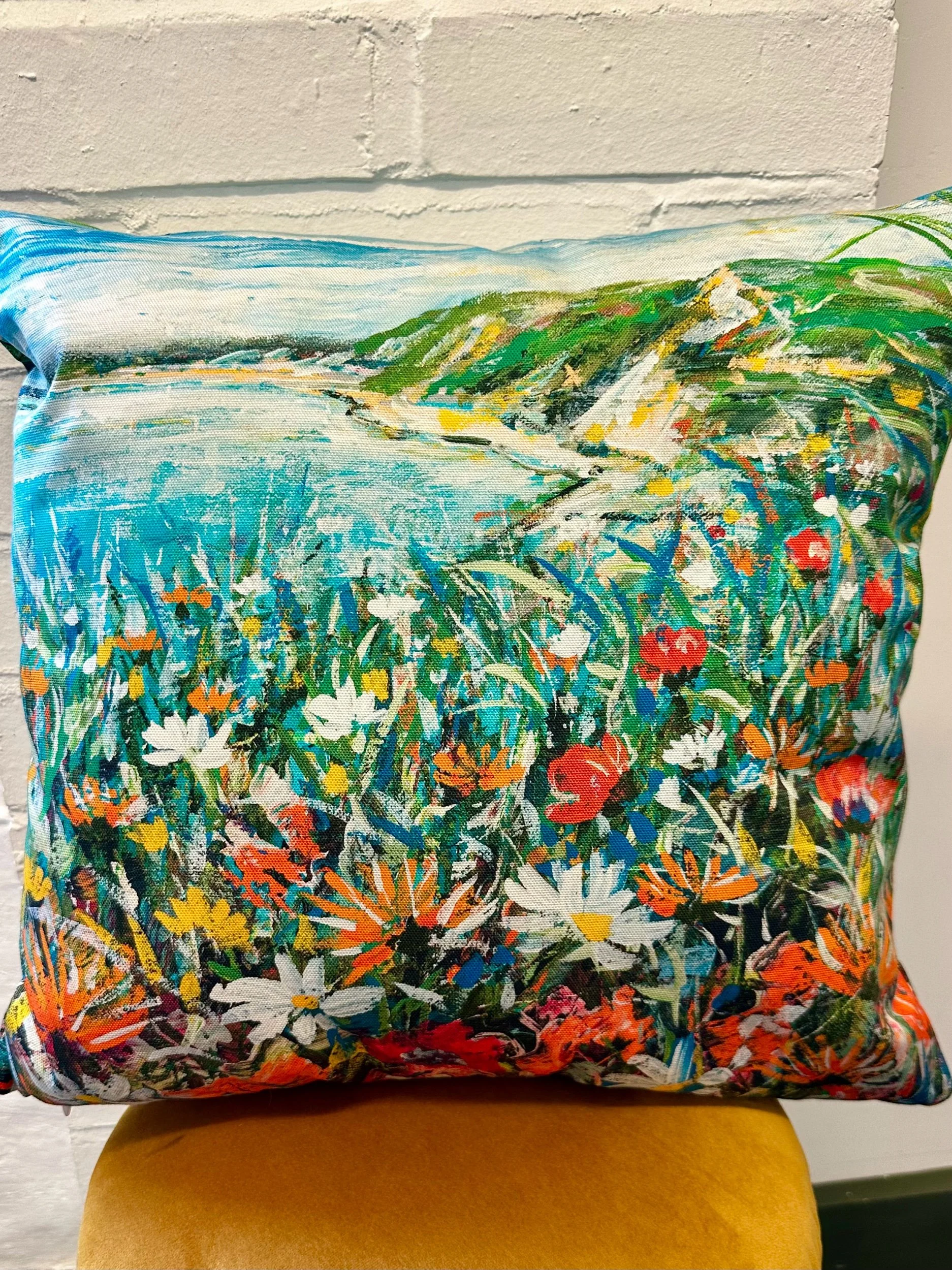 Brighten up your sofa, bed or favourite chair with a printed cushion from an original acrylic painting! If you haven’t got room on your walls this is a perfect way to collect an artwork x