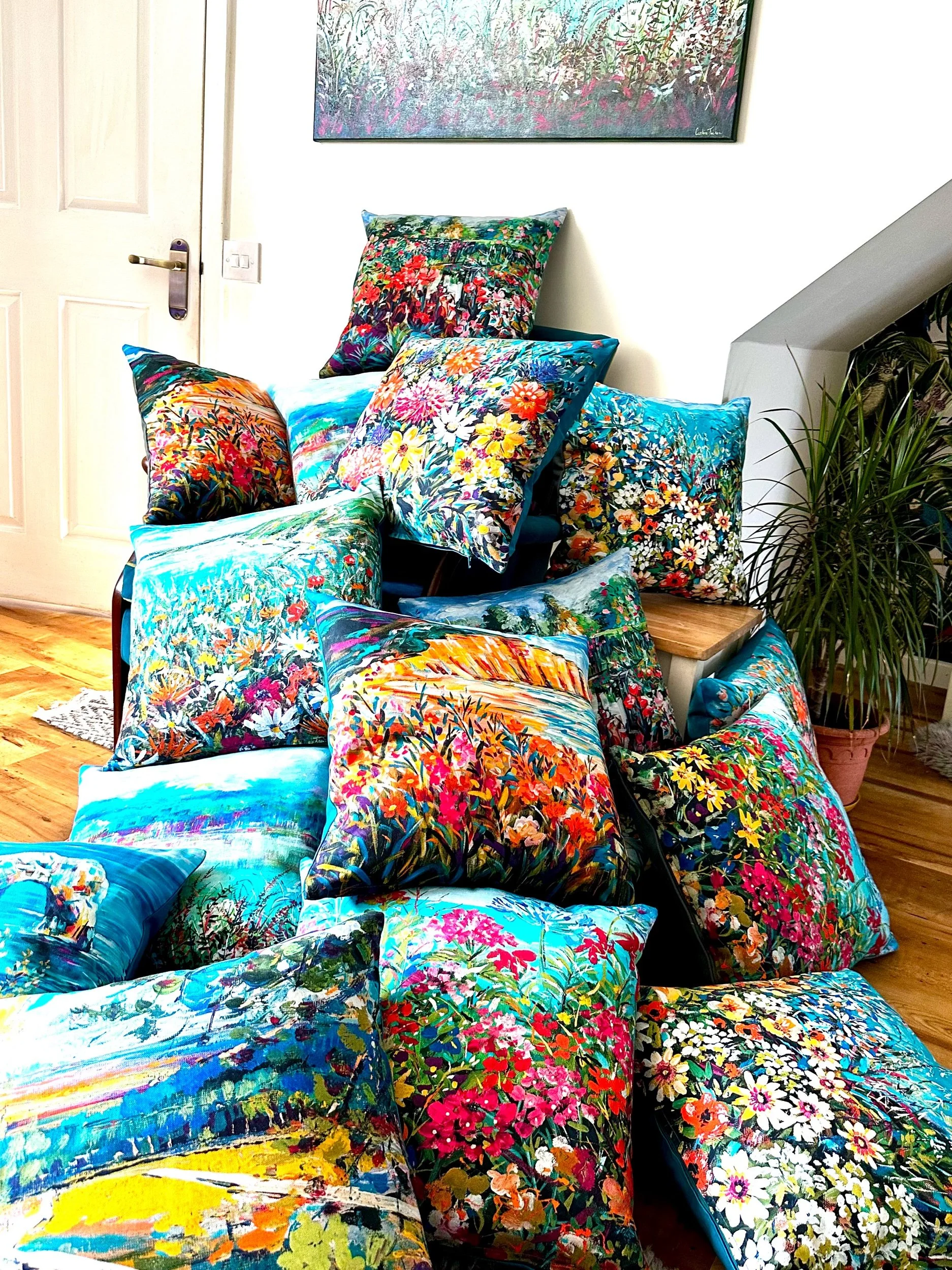 Brighten up your sofa, bed or favourite chair with a printed cushion from an original acrylic painting! If you haven’t got room on your walls this is a perfect way to collect an artwork x
