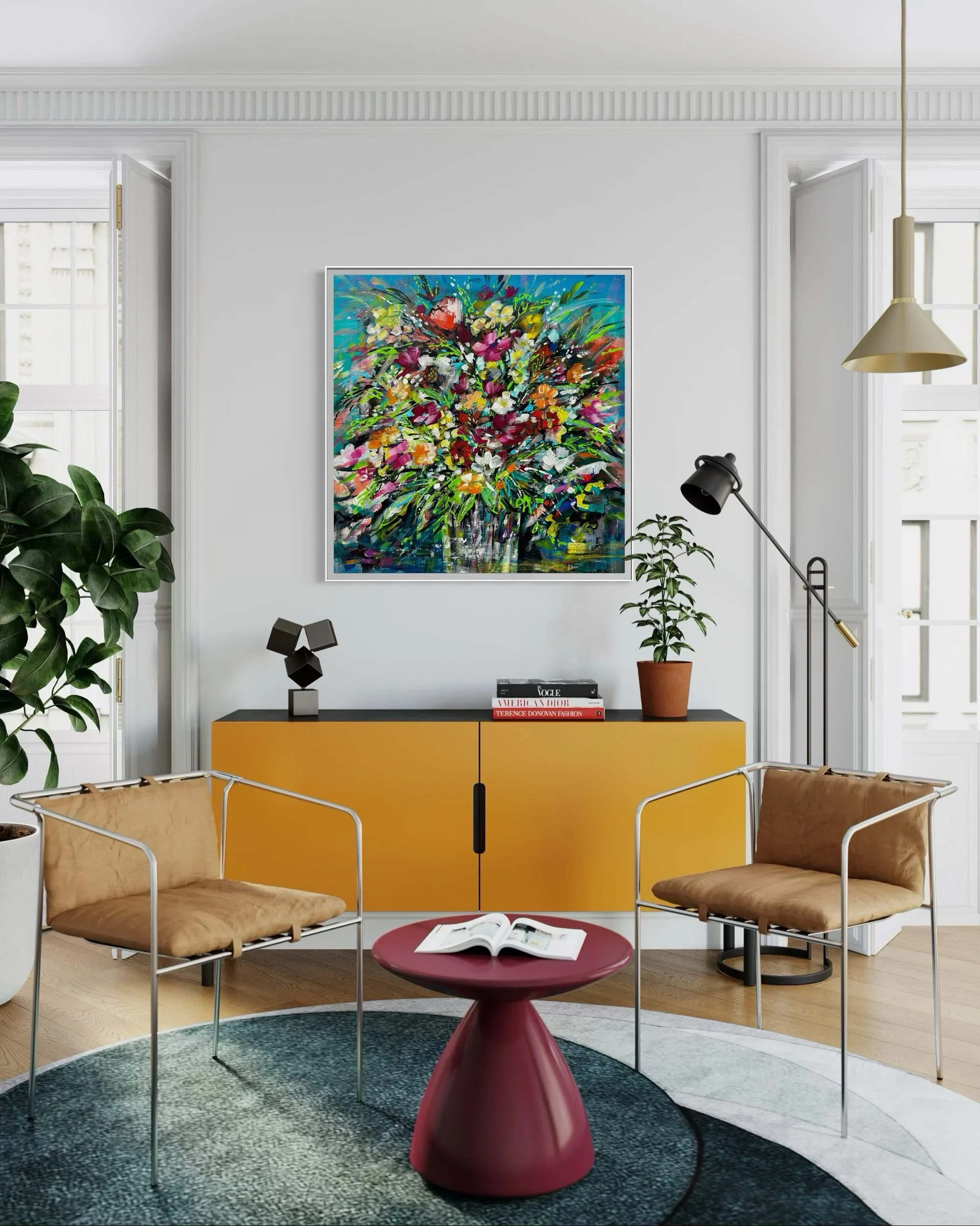 This colourful acrylic painting will brighten your day. It’s full of wonderful colours and textures that will make your life inspire your life and your family every day.